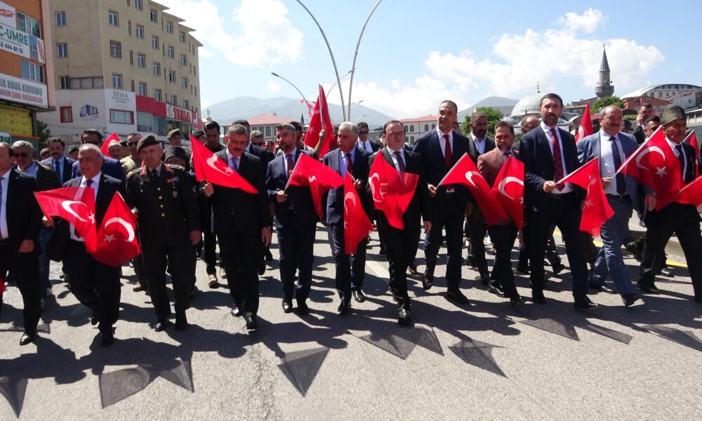 Alınan kararlarla Kurtuluş Savaşı’nın meşalesinin yakıldığı Erzurum Kongresi’nin 105’inci yıl dönümü törenleri, Atatürk anıtına çelenk konulması, saygı duruşu ve İstiklal Marşı’nın okunmasıyla başladı. Vali Mustafa Çiftçi, TBMM Başkanlık Divanı Üyesi ve Kütahya Milletvekili Adil Biçer, 9’uncu Kolordu ve Garnizon Komutan Vekili Tuğgeneral Mehmet Cihanoğlu, Erzurum Büyükşehir Belediye Başkanı Mehmet Sekmen, ilçe kaymakam ve belediye başkanları, kamu kurumlarının amirleri öğrencilerin taşıdığı 100 metre uzunluğundaki bayrakla kortej yürüyüşüne katıldı. Tiyatro oyuncusunun canlandırdığı Mustafa Kemal’in faytonla katıldığı yürüyüş boyunca mehter takımı marşlar çaldı.