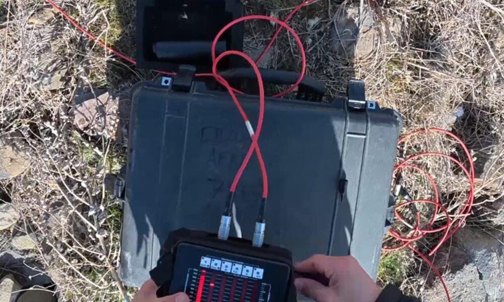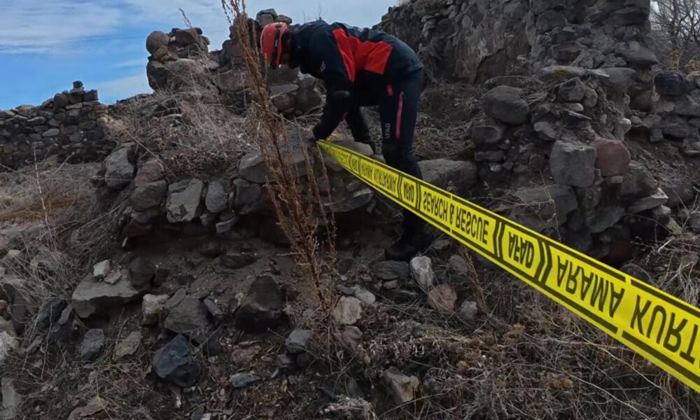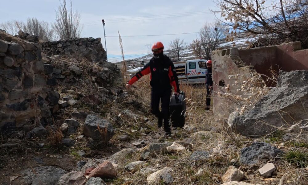 • Erzurum'un Aziziye ilçesine bağlı kırsal Ağören Mahallesi'nde ekipler, metruk bir binada sismik akustik dinleme cihazı ile canlı olup olmadığını kontrol etti. Fotoğraf: Erzurum,(DHA)