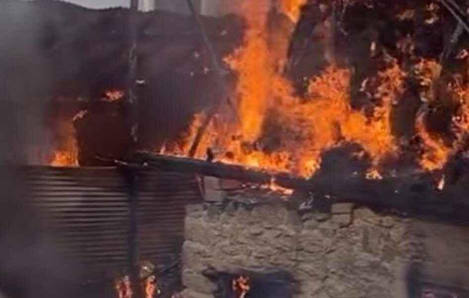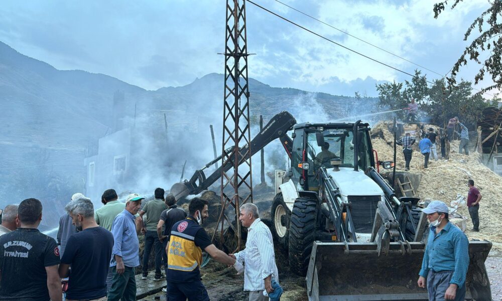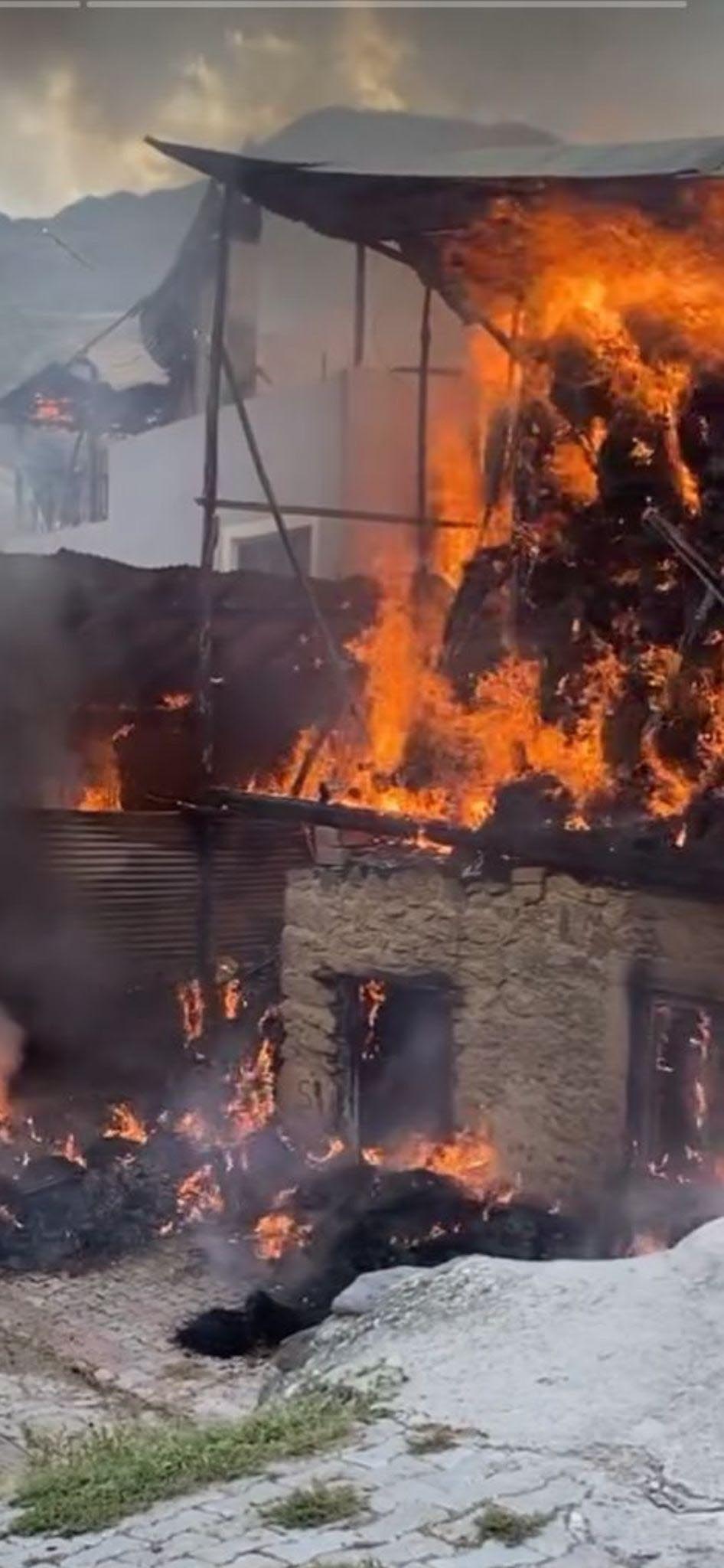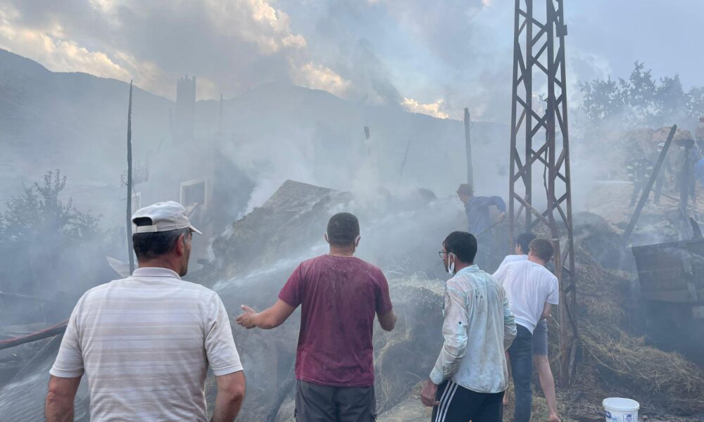 Erzurum’da çıkan yangında 2 ev 1 ahır ve 1 samanlık kül oldu