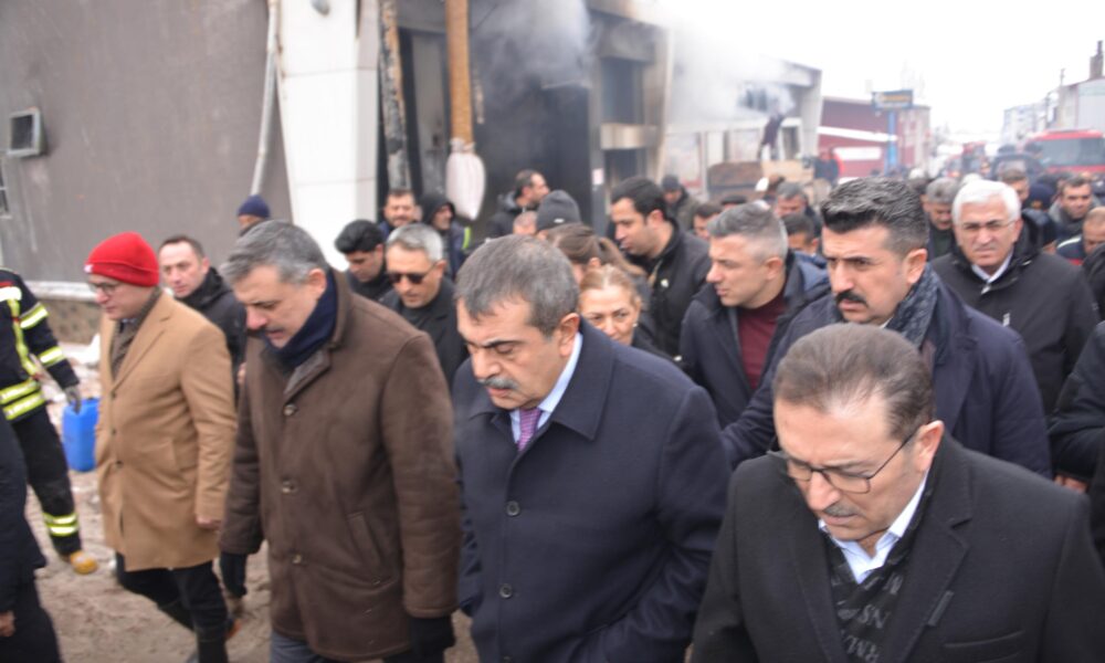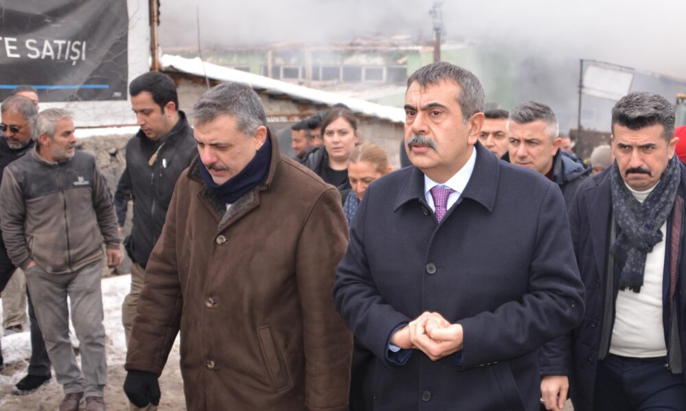 • Milli Eğitim Bakanı Yusuf Tekin, olay yerine gelerek Vali Mustafa Çiftçi'den bilgi aldı. Bakan Tekin, 30 araçla yangına müdahale edildiğini açıkladı. Fotoğraf: Salih TEKİN/Erzurum,(DHA)