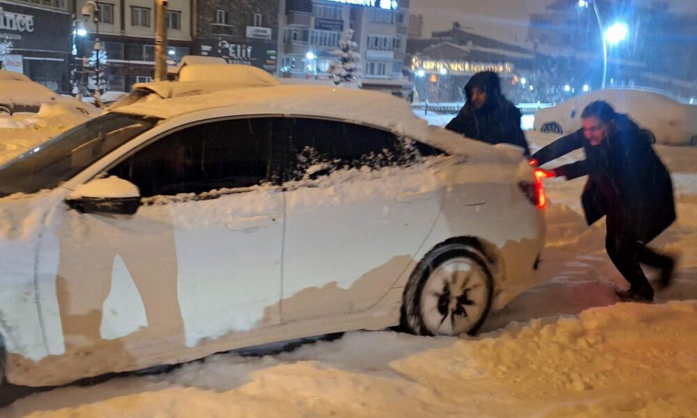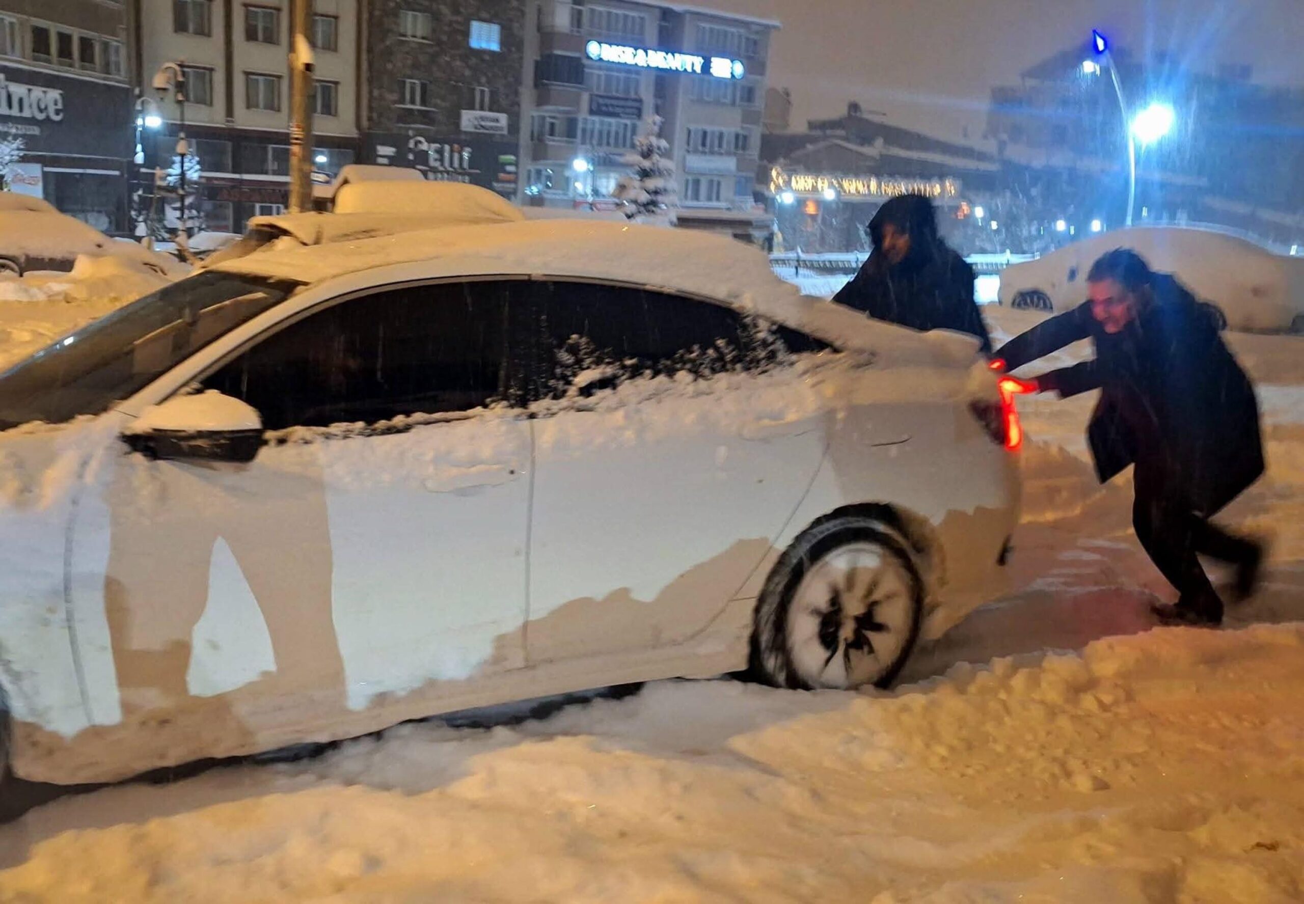 Erzurum’da kar yağışı etkili oldu; araçlar kara gömüldü / Ek fotoğraflar