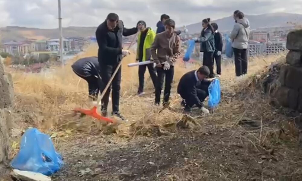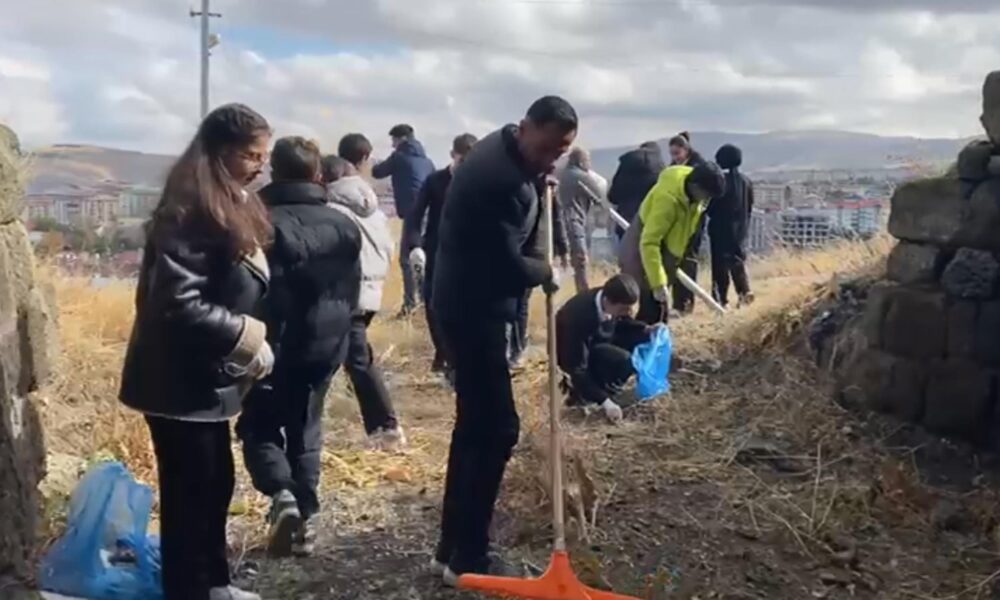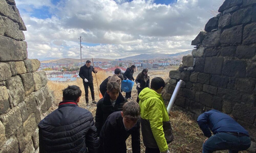 Erzurum’da öğrencilerden ecdada vefa; tarihi tabyaları temizlediler