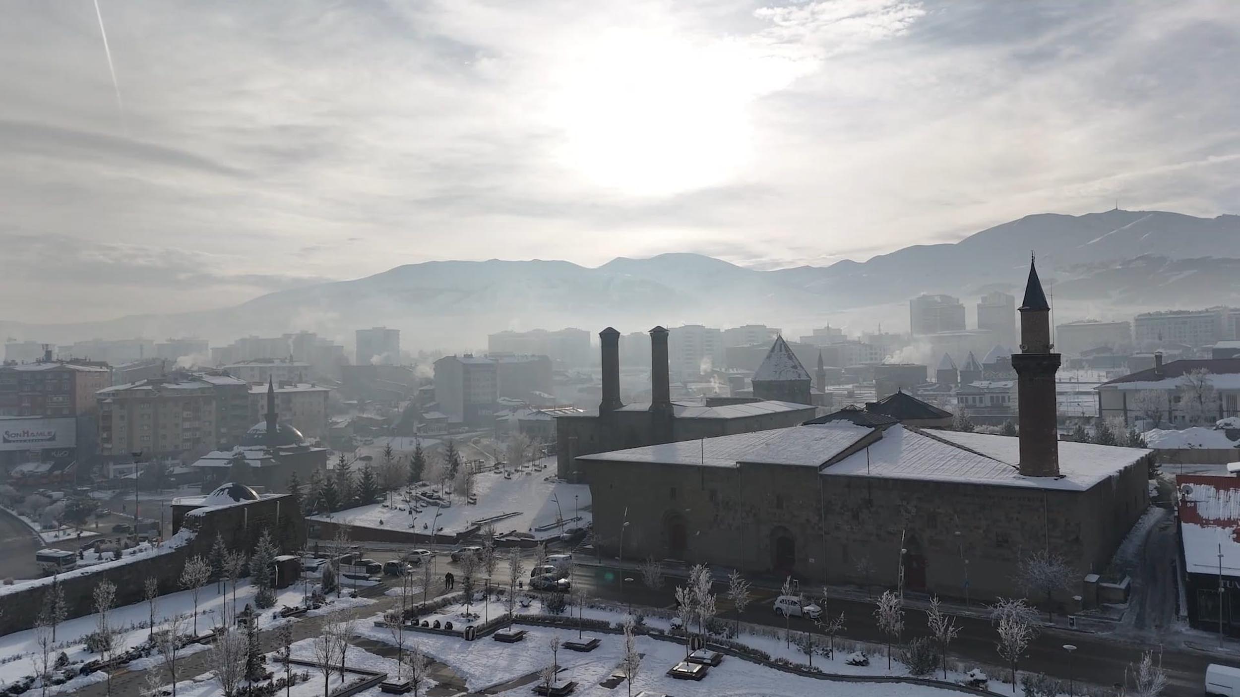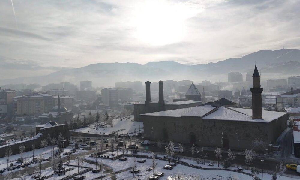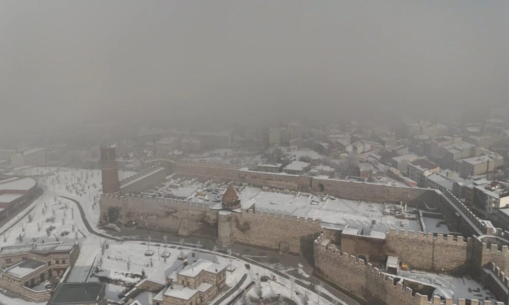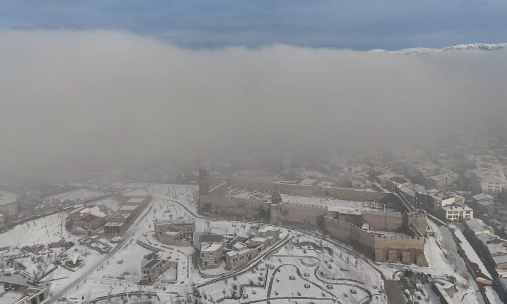 Erzurum’da sis; kent havadan dronla görüntülendi