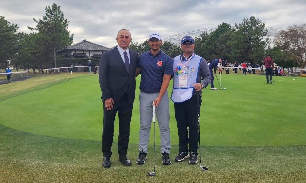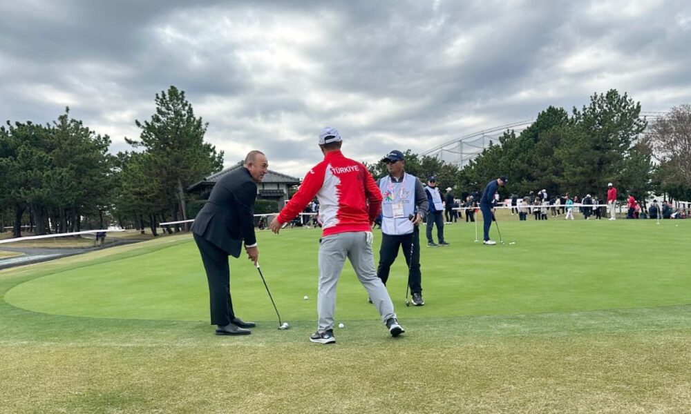 Tokyo Büyükelçisi Oğuzhan Ertuğrul, Spor Genel Müdür Yardımcısı Hakan Bebek, Türkiye İşitme Engelliler Federasyon Başkanı Dursun Gözel ve Türkiye Futbol Federasyonu Engelli Futbolu Koordinasyon Kurulu Başkanı Kerim Vural ile birlikte önce voleybol ve Hentbol Milli Takım maçlarını izleyen eski bakan Çavuşoğlu, ardından golf sahasına giderek milli sporcumuz Mehmet Yavuz’a destek verdi. İlk günü 90 vuruşla tamamlayan Yavuz, yarın atışlarına devam edecek ve iki gün sonra final müsabakalarında mücadele edecek.