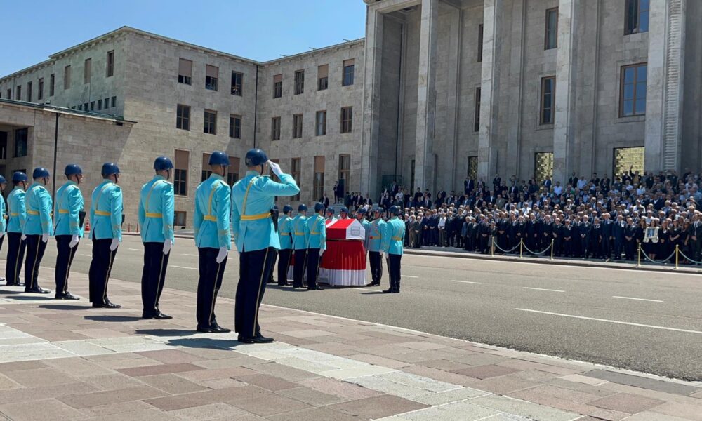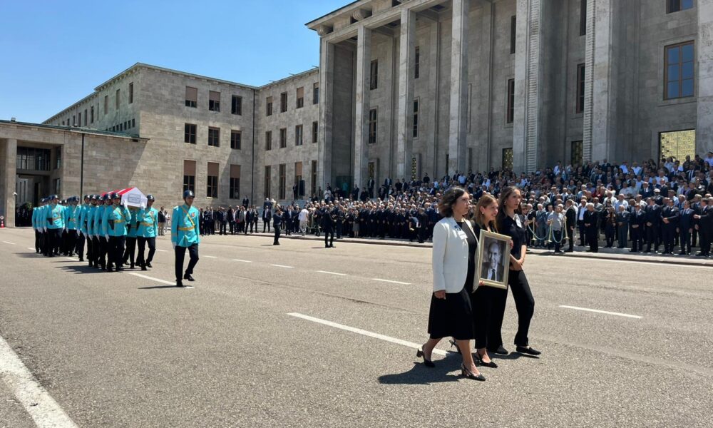 Altan Öymen, bir süredir yaşadığı sağlık sorunları nedeniyle 2 gün önce tedavi gördüğü hastanede hayatını kaybetti. Öymen için bugün TBMMde düzenlenen törene, Öymenin ailesi ve yakınları ile TBMM Başkanı Numan Kurtulmuş, CHP Genel Başkanı Özgür Özel, MHP Genel Başkanı Devlet Bahçeli, İYİ Parti Genel Başkanı Müsavat Dervişoğlu, DEVA Partisi Genel Başkanı Ali Babacan, AK Parti Grup Başkanı Abdullah Güler, siyasi partilerin grup başkan vekilleri, milletvekilleri, eski CHP Genel Başkanı Kemal Kılıçdaroğlu ve eski TBMM Başkanı Bülent Arınç katıldı. Öymenin Türk bayrağına sarılı tabutu görevlilerin omuzlarında TBMMnin şeref kapısı merdivenlerinin önüne getirildi. Öymennin hatırasına saygı duruşunda bulunulmasının ardından dua okundu.