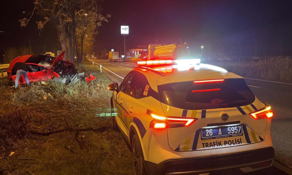 Eskişehir’de ağaca çarpan otomobilin sürücüsü ağır yaralandı
