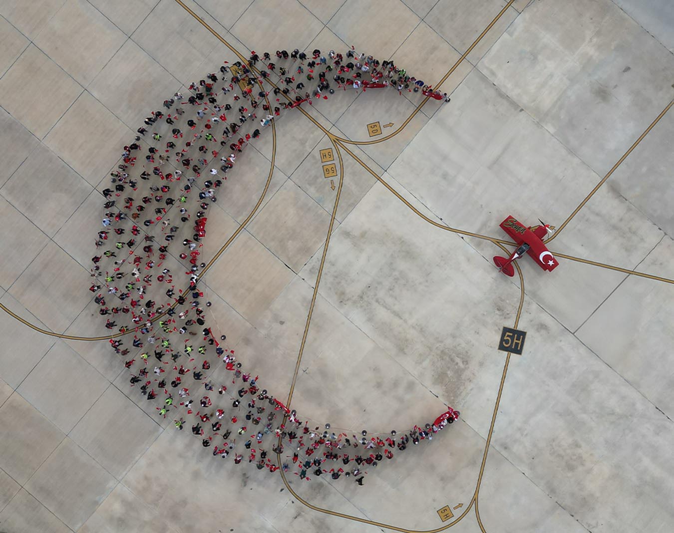 Sivrihisar Havacılık Merkezi, geleneksel hale getirdiği hilal-yıldız koreografisinin 11incisini, 29 Ekim Cumhuriyet Bayramı etkinliklerine özel olarak hazırladı. Sivrihisar’ın kırsal Yeşilköy Mahallesindeki Necati Artan tesislerine çevre illerden ellerinde Türk bayraklarıyla gelen yüzlerce kişi, hilal şeklini aldı. Türkiyenin ilk kadın profesyonel akrobasi pilotu olan Semin Öztürk Şenerin Yeni Menekşe isimli akrobasi uçağı da yıldızı oluşturarak koreografiyi tamamladı.