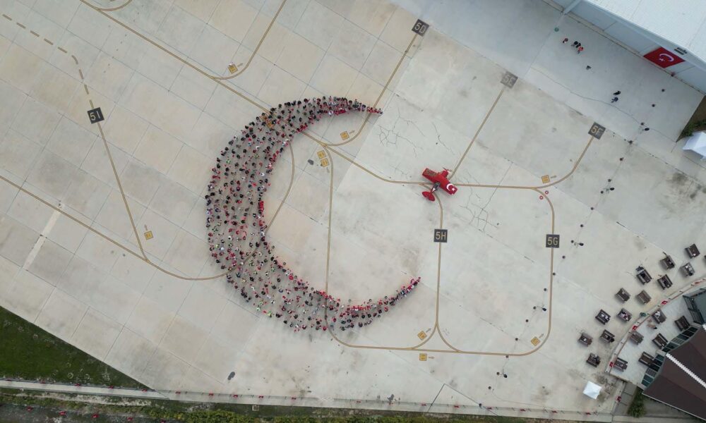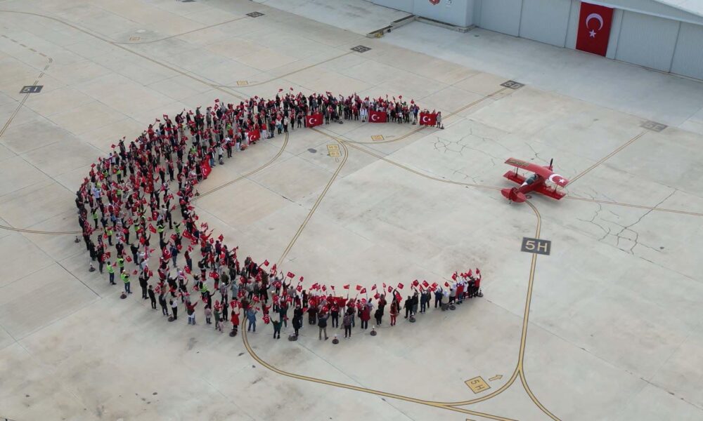 Eskişehir’de Cumhuriyet Bayramı’na özel koreografi; insanlar hilal, akrobasi uçağı yıldız oldu