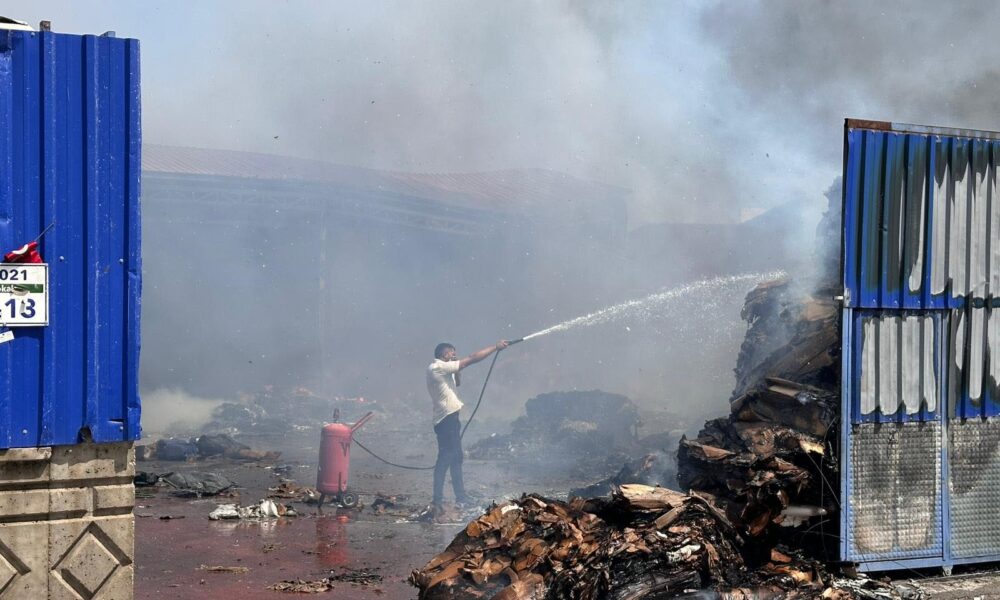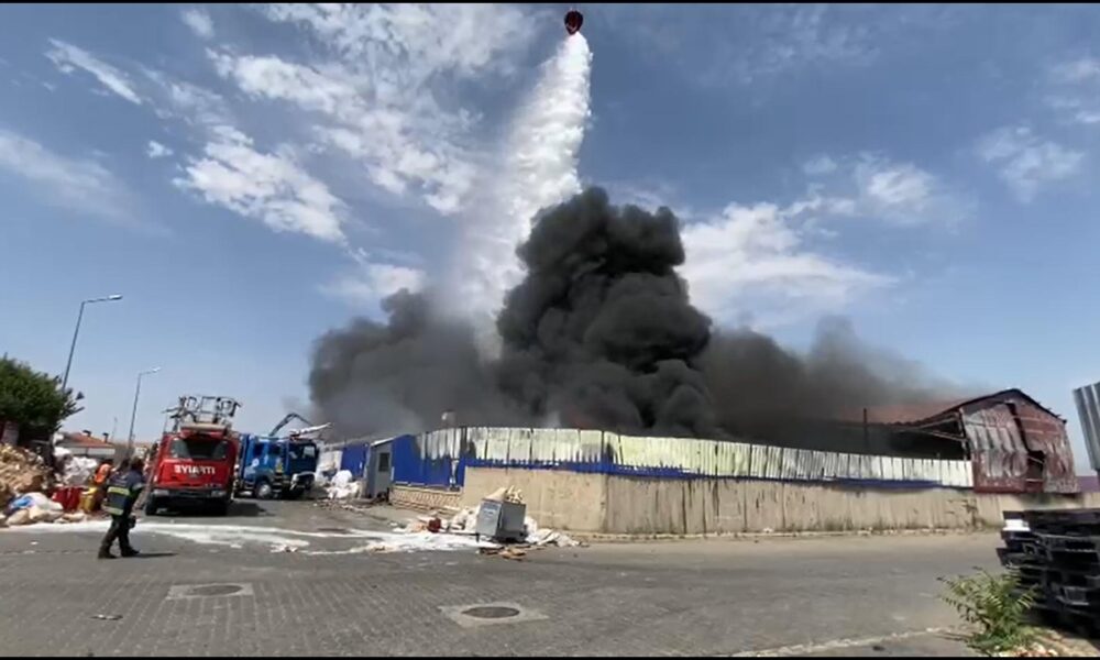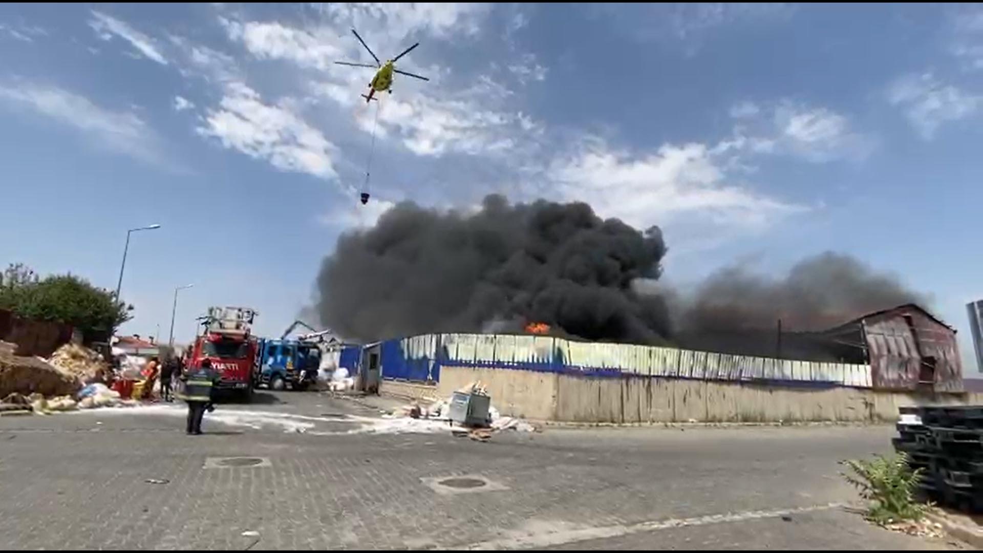 Eskişehir’de geri dönüşümcüler sitesindeki bir fabrikada çıkan ve yanındaki 2 fabrikaya daha sıçrayan yangın, itfaiye ekipleriyle helikopterin desteğiyle kontrol altına alındı.