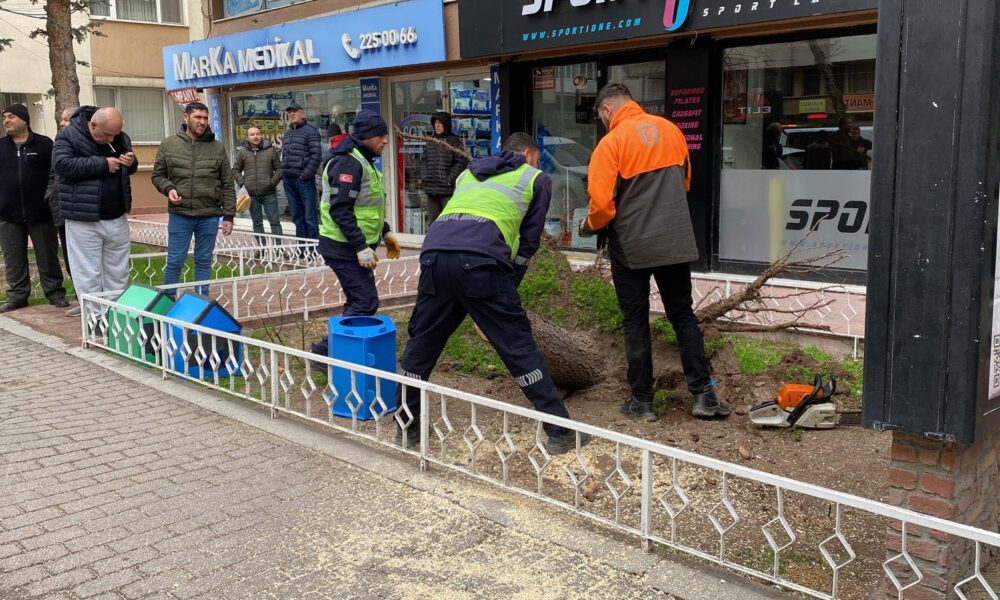 Eskişehir’de kuvvetli rüzgar ağaçları devırdi