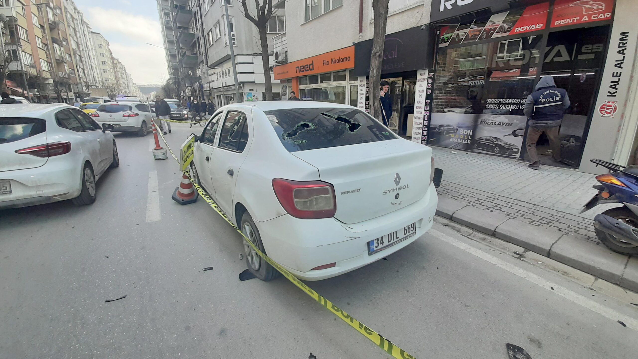 Öte yandan olay sırasında, oto kiralama şirketi önünde park halinde bulunan 34 DIL 669 plakalı otomobilde hasar meydana geldi. Soruşturma başlatan polis, şüphelilerin kimliklerinin tespit edilmesi ve yakalanması için çalışma başlattı.