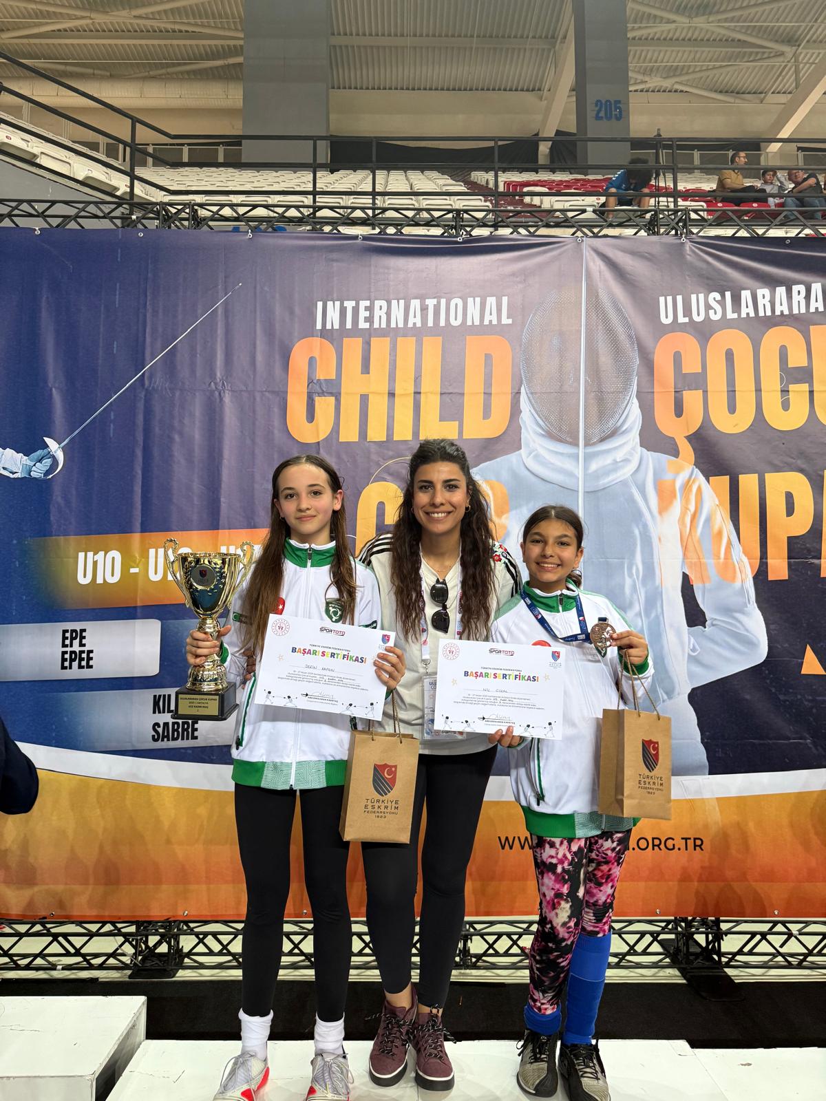 Yurt içindeki organizasyonlarda ise Türkiye Federasyon Kupası’nda U12 kadınlarda Derin Kapkın şampiyon olurken, U10 erkeklerde Mehmet Yaman Eraslan, U12 erkeklerde Demir Çırpan ve Deniz Devrim Akçadağ, U14 Erkeklerde Osman İbrahim Erdöl, U10 Kadınlarda Volga Peri Altıner üçüncülük elde etti. Türkiye Eskrim Açık Turnuvası’nda ise U17 kadınlar kategorisinde Hayat Gündoğan üçüncü olurken, 19-21 Nisan 2025 tarihlerinde düzenlenen Uluslararası Çocuk Kupası’nda Derin Kapkın gümüş madalya kazanarak ikinci oldu.