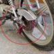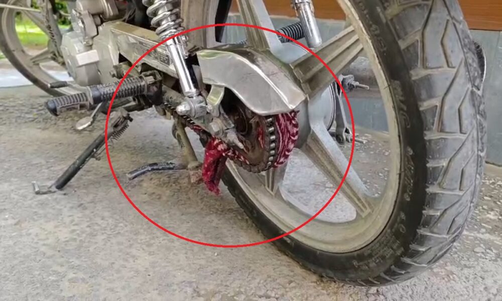 Eteği zincire takılınca motosiklet devrildi; kaza kamerada
