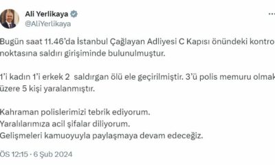 İÇİŞLERİ Bakanı Ali Yerlikaya, İstanbul Çağlayan Adliyesi’ne yönelik saldırı girişiminde 1’i kadın 1’i erkek 2 saldırganın ölü olarak ele geçirildiğini ve 3’ü polis memuru 5 kişinin...