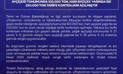 CUMHURBAŞKANI Recep Tayyip Erdoğan’ın imzasıyla Resmi Gazete’de yayımlanan karara göre, ayçiçeği tohumunda yüzde 27 yerine yüzde 12, ham ayçiçeği yağında ise yüzde 36 yerine yüzde 22 oranında gümrük...