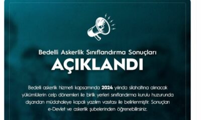 MİLLİ Savunma Bakanlığı (MSB), bedelli askerlik sınıflandırma sonuçlarının açıklandığını duyurdu. Bakanlığın sosyal medya hesabından yapılan açıklamada, “Bedelli askerlik hizmeti kapsamında 2024 yılında silah altına alınacak yükümlülerin...