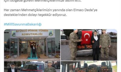 MİLLİ Savunma Bakanlığı, terörle mücadele eden Mehmetçiğe destek için bahçesinde yetiştirdiği 30 kasa elmayı Şırnak’taki 23’üncü Piyade Tümen Komutanlığı’na teslim eden Muhammet Yılmaz’ın ziyaretine ilişkin paylaşımda...