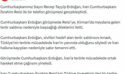 TBMM Başkanı Numan Kurtulmuş, İran’daki bombalı terör saldırısına ilişkin, sosyal medya hesabından taziye mesajı yayınladı. TBMM Başkanı Numan Kurtulmuş, sosyal medya hesabından yaptığı açıklamada, “İran’ın Kirman...