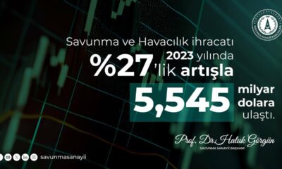 CUMHURBAŞKANLIĞI Savunma Sanayii Başkanı Haluk Görgün, savunma ve havacılık sanayii ihracatının yeni bir rekora imza attığını belirterek, “2022 yılında 4,364 milyar dolar olan savunma ve havacılık...