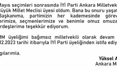 İYİ Parti Ankara Milletvekili Yüksel Arslan, Ankara Büyükşehir Belediye Başkanı Mansur Yavaş’a 31 Mart’taki yerel seçimlerde desteğini açıklayarak İYİ Parti’den istifa ettiğini duyurdu. Yüksel Arslan, sosyal medya...