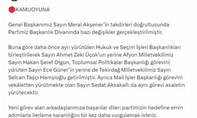 İYİ Parti Sözcüsü Kürşad Zorlu, Başkanlık Divanında bazı değişikler yapıldığını duyurdu. İYİ Parti Sözcüsü Kürşad Zorlu, sosyal medya hesabından yaptığı açıklamada, “Genel Başkanımız Sayın Meral Akşener’in...
