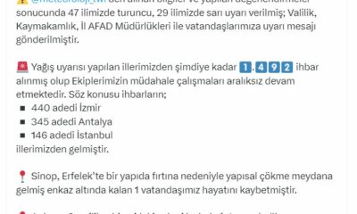 AFET ve Acil Durum Yönetimi Başkanlığı (AFAD), yurt genelinde etkili olan fırtına nedeniyle 2 kişinin hayatını kaybettiğini, 4’ü asker 10 kişinin de yaralandığını duyurdu. AFAD’ın sosyal...