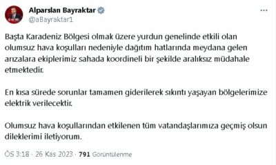 ENERJİ ve Tabii Kaynaklar Bakanı Alparslan Bayraktar, olumsuz hava koşulları nedeniyle enerji dağıtım hatlarında meydana gelen arızalara müdahale edildiğini açıkladı. Bakan Bayraktar, sosyal medya hesabından yaptığı açıklamada,...