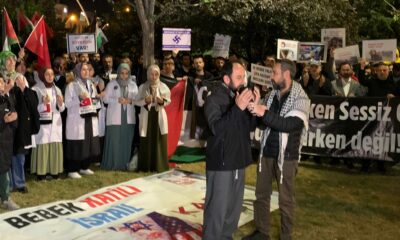 ANKARA’da sivil toplum örgütleri ve sağlıkçılar, Amerika Birleşik Devletleri (ABD) Büyükelçiliği önünde Filistin’e destek eylemi düzenledi. Ankara Filistin Dayanışma Platformu, ABD Büyükelçiliği önünde Filistin’e destek için toplandı....