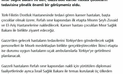 SAĞLIK Bakanı Fahrettin Koca, Gazze’den Mısır’a sevk edilecek hastaların tedavilerini, Türkiye’den gönderilen sağlık personeli ile Mısırlı sağlıkçıların gerçekleştireceğini açıkladı. Bakan Koca, sosyal medya hesabından yaptığı açıklamada, Mısır...