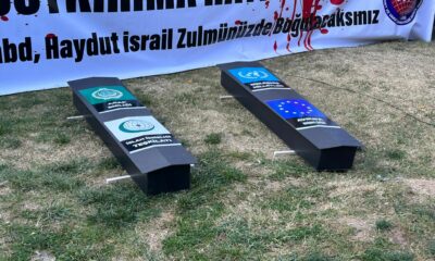 ANKARA’da Diyanet-Sen üyeleri, Gazze’deki sivil ölümlerine ilişkin ABD Büyükelçiliği önünde Filistin’e destek açıklaması yaptı. Memur Sendikaları Konfederasyonu’na bağlı Diyanet-Sen üyesi 200 kişi, Çankaya ilçesindeki ABD Büyükelçiliği önünde bir...
