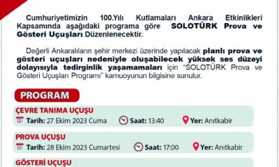 ANKARA’da 29 Ekim Cumhuriyet Bayramı ve Cumhuriyet’in ilanının 100’üncü yıl dönümü için Türk Hava Kuvvetleri’nin gösteri ekibi SoloTürk, jetleri prova yaptı. Türkiye Cumhuriyeti’nin 100’üncü yılı kutlamaları kapsamında...
