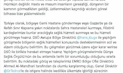 SAĞLIK Bakanı Fahrettin Koca, Gazze’ye sağlık hizmeti vermek için harekete geçtiklerini belirterek, “Bölgeye gemi hastane göndermeye veya Gazze’de ya da Refah Sınır Kapısı’na yakın noktalarda sahra...