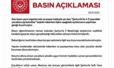 AİLE ve Sosyal Hizmetler Bakanlığı, Şanlıurfa’da 4-5 yaşındaki çocuklara şiş batırıldığı görüntülerle ilgili, olaya karışanlar hakkında suç duyurusunda bulunulduğunu ve söz konusu çocukların devlet koruması altına...