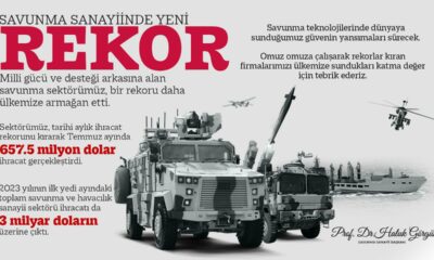 CUMHURBAŞKANLIĞI Savunma Sanayii Başkanı Haluk Görgün, savunma sektörünün tarihi aylık ihracat rekoru kırarak temmuz ayında 657.5 milyon dolar ihracat gerçekleştirdiğini duyurdu. Savunma Sanayii Başkanı Görgün, sosyal medya hesabından yaptığı...