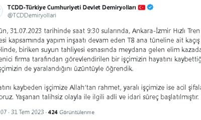 TÜRKİYE Cumhuriyeti Devlet Demiryolları (TCDD), Ankara-İzmir Hızlı Tren Projesi kapsamında yapım inşaatı devam eden T8 ana tüneline ait kaçış tünelinde, biriken suyun tahliyesi esnasında meydana gelen kazada...