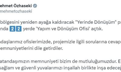 ÇEVRE, Şehircilik ve İklim Değişikliği Bakanı Mehmet Özhaseki, deprem bölgesinde başlatılan ‘Yerinde Dönüşüm Projesi’ne ilişkin, “El ele vererek sağlam ve güvenli yuvalarımızı inşallah birlikte inşa edeceğiz” dedi. Bakan Özhaseki,...