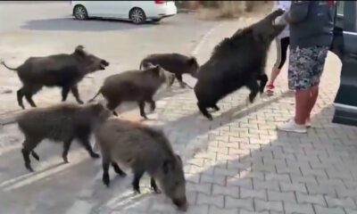 AYDINın Kuşadası ilçesinde sürüdeki yaban domuzlarından biri, kendisini besleyen tatilcilerden birinin elindeki ekmeği kapmak isterken kolunu ısırdı. O anlar, cep telefonuyla görüntülenirken; Ekosistemi Koruma ve Doğa...