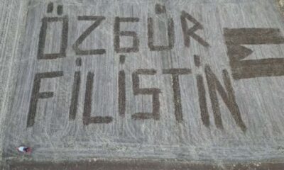 ÇANAKKALEnin Biga ilçesinde çiftçilik yapan Hüseyin Savaş ve Fikret Savaş kardeşler, tarlalarına traktörle Özgür Filistin yazdı. Biga ilçesine bağlı Eskibalıklı köyünde yaşayan Hüseyin ve Fikret Savaş...