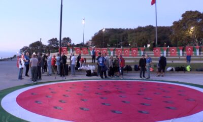 Zeytinburnu Yüzme Kulübü Açık Su yüzücüleri sabah saat 07.00de Sarayburnu’nda biraraya geldi. 15 kişi Filistin’de yaşanan olayları protesto etmek için ve Küresel Sumud Filosuna destek vermek...