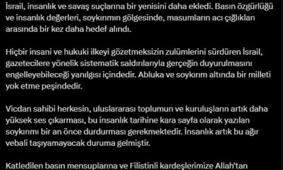 İletişim Başkanı Burhanettin Duran, İsrailin Gazzede Nasır Hastanesine düzenlediği saldırıda gazetecilerin de aralarında bulunduğu sivillerin hayatını kaybetmesine ilişkin yazılı açıklama yaptı. Duran, “İsrail, insanlık ve savaş...