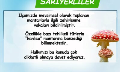 BİLİNÇSİZ toplanan mantarlar zehirlenme ve ölümlere neden oluyor. Sarıyer’de de ‘Kanlıca’ mantarı sanılarak toplanılan mantarlardan yiyen 11 kişi zehirlendi. Sarıyer Belediyesi uyarıda bulundu. Uyarıda, “İlçemizde mevsimsel...