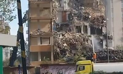 BEŞİKTAŞ’TA 11 katlı binanın iş makinesi ile yıkımı sırasında çökmesi çevredeki bir kişinin cep telefonu kamerasıyla kaydedildi. Yıkım sırasında toz çıkmaması için sulama yapan bir görevli...
