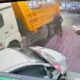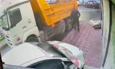 SULTANGAZİ’de seyir halindeki kamyonun lastiği bomba gibi patladı, binanın önündeki paspas havalanarak park halindeki otomobilin üzerine düştü. O anlar güvenlik kamerasına yansıdı. Olay, 11 Kasım Cumartesi...