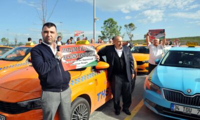 İSTANBUL Havalimanı Taksiciler Kooperatifi üyeleri, İsrail’in Gazze’ye yönelik saldırılarını protesto etmek için ‘Filistin halkının yanındayız’ yazılı afişleri araçlarına yapıştırdı. İstanbul Havalimanı Taksiciler Kooperatif üyeleri, İsrail’in Gazze’ye...