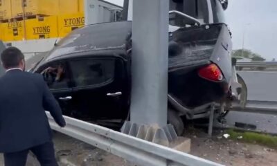 ÜMRANİYE Kuzey Marmara Otoyolu’nda inşaat malzemesi yüklü TIR, aniden sapağa yönelerek önüne geçen kamyonete çarptı. Çarpmanın şiddetiyle bariyerlere sürüklenen kamyonetteki sürücü yaralanırken, kaza anı araç kameraya...