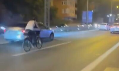 ŞİLE Otoyolu’nda trafikte bisiklet kullanan bir kişi hem kendi hayatını hem de trafik güvenliğini tehlikeye attı. Bisikletlinin zaman zaman 50 kilometre hıza çıktığı anlar kameraya yansıdı....