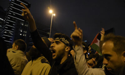 İSRAİL’in Gazze’deki El-Ehli Babtist Hastanesi’ni hedef almasının ardından İstanbul’daki İsrail Başkonsolosluğu önünde toplanan vatandaşlar saldırıyı protesto etti. Protestocuların konsolosluk binasının bulunduğu alana girmek istemesi üzerine polis...