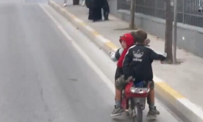 SANCAKTEPE’de, 3 çocuğun bir elektrikli motosiklete binerek caddede tehlikeli şekilde ilerlediği anlar, cep telefonu kamerasına yansıdı. Olay, dün öğle saatlerinde Sancaktepe Eyüp Sultan Mahallesi Müminler Caddesi’nde...