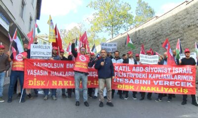 SARIYER’deki ABD’nin İstanbul Başkonsolosluğu önünde toplanan Nakliyat-İş sendikası üyeleri Filistin’de yaşananlarla ilgili İsrail ve ABD’yi sloganlar atarak protesto etti. Türkiye Devrimci İşçi Sendikaları Konfederasyonu’na (DİSK) bağlı...