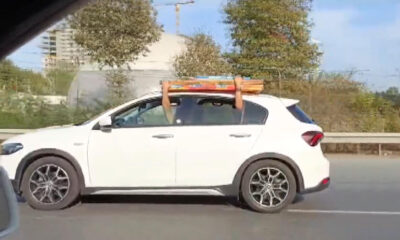 FATİH’te, yoğun trafikte otomobil tavanında yapılan yük taşımacılığı kameraya yansıdı. Otomobil içerisindeki 4 kişi, uzun süre tavandaki eşyayı elleriyle tutup trafikte ilerledi. Fatih Topkapı’da seyir halindeki bir otomobilin...